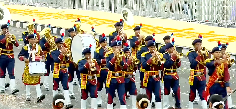 At the event, the musical band from Prince Lotus Valley, a CBSE English medium school in Sikar, played captivating tunes to songs like "Kadam Kadam Badhaye Ja," "Maa Tujhe Salaam," "Sare Jahan Se Achha," and "Jahaan Daal-Daal Par Sone Ki Chidiyan." Prime Minister Narendra Modi applauded the students several times during the performance, encouraging them. A large number of people from across the country, including prominent figures from various fields, including political, administrative, and social figures, attended the event.
