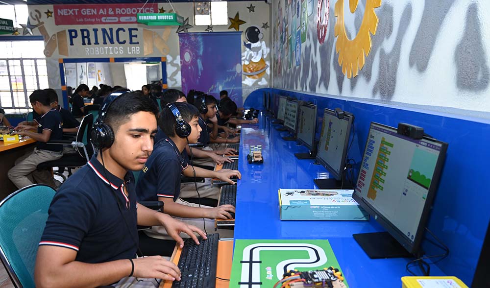 At Prince Academy, innovation is a culture. Our AI & Robotics Lab is a future-ready space that nurtures analytical thinking, creativity, and technological skills. Students explore Artificial Intelligence, Robocs, Coding, and Automation through hands-on, project-based learning, enabling them to design, program, and innovate with confidence. Through hands-on projects and guided experiments, students learn to design and program intelligent systems, developing logical reasoning, problemsolving skills, and an innovation mindset from an early age.
